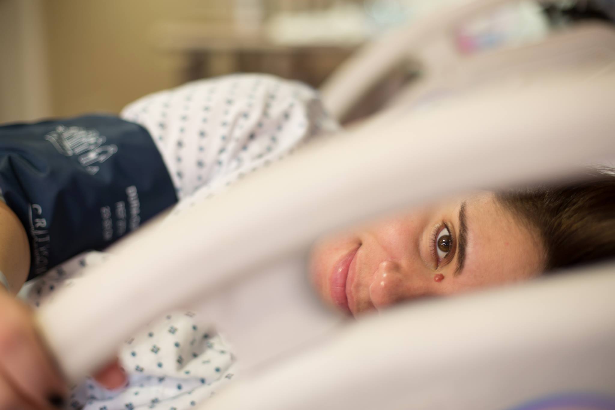 აქ უკვე საავადმყოფოში ვართ, ხელი ლოგინის ტარზე მაქვს ჩაჭიდებული – ტკივილების გაძლებაში მეხმარებოდა. სულ მაინტერესებდა წყლის დაღვრა როგორი იყო. ხოდა როგორც ფილმებში ხდება დაახლოებით ეგრე დამემართა,  საავადმყოფოში მიმავალნი გზაში ვიგრძენი როგორ წამოვიდა და ფაქტიურად ჭინთვებამდე ვღვრიდი მემგონი.